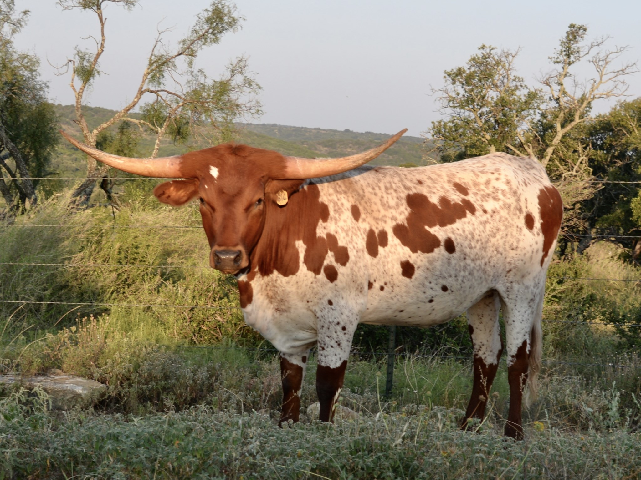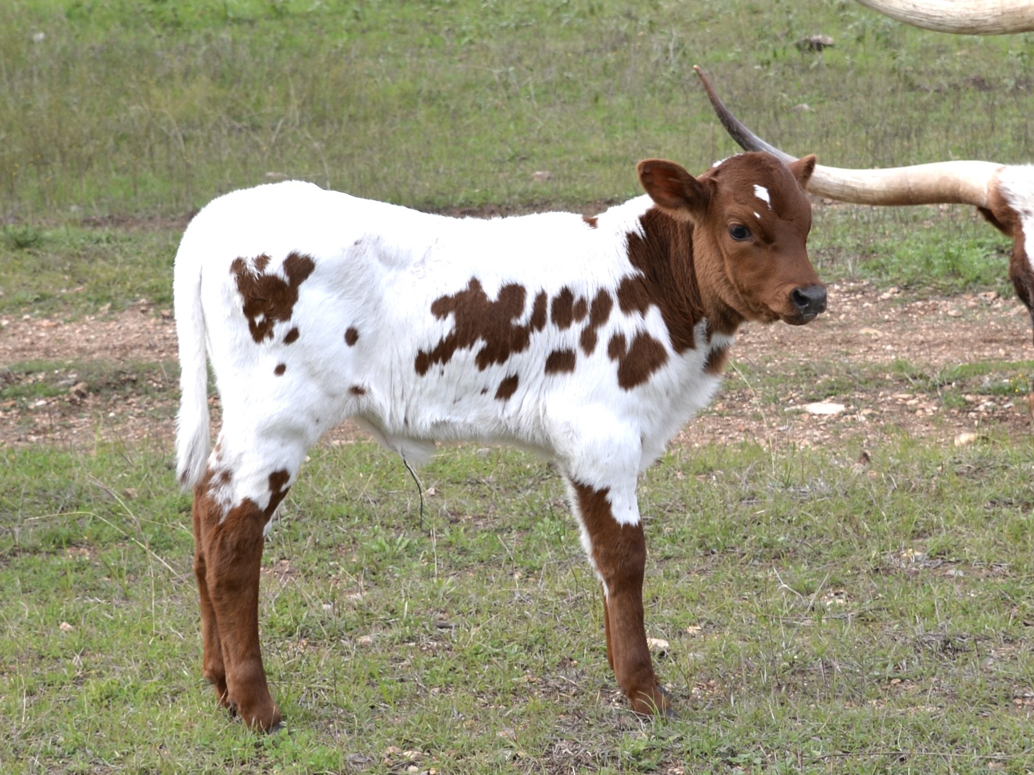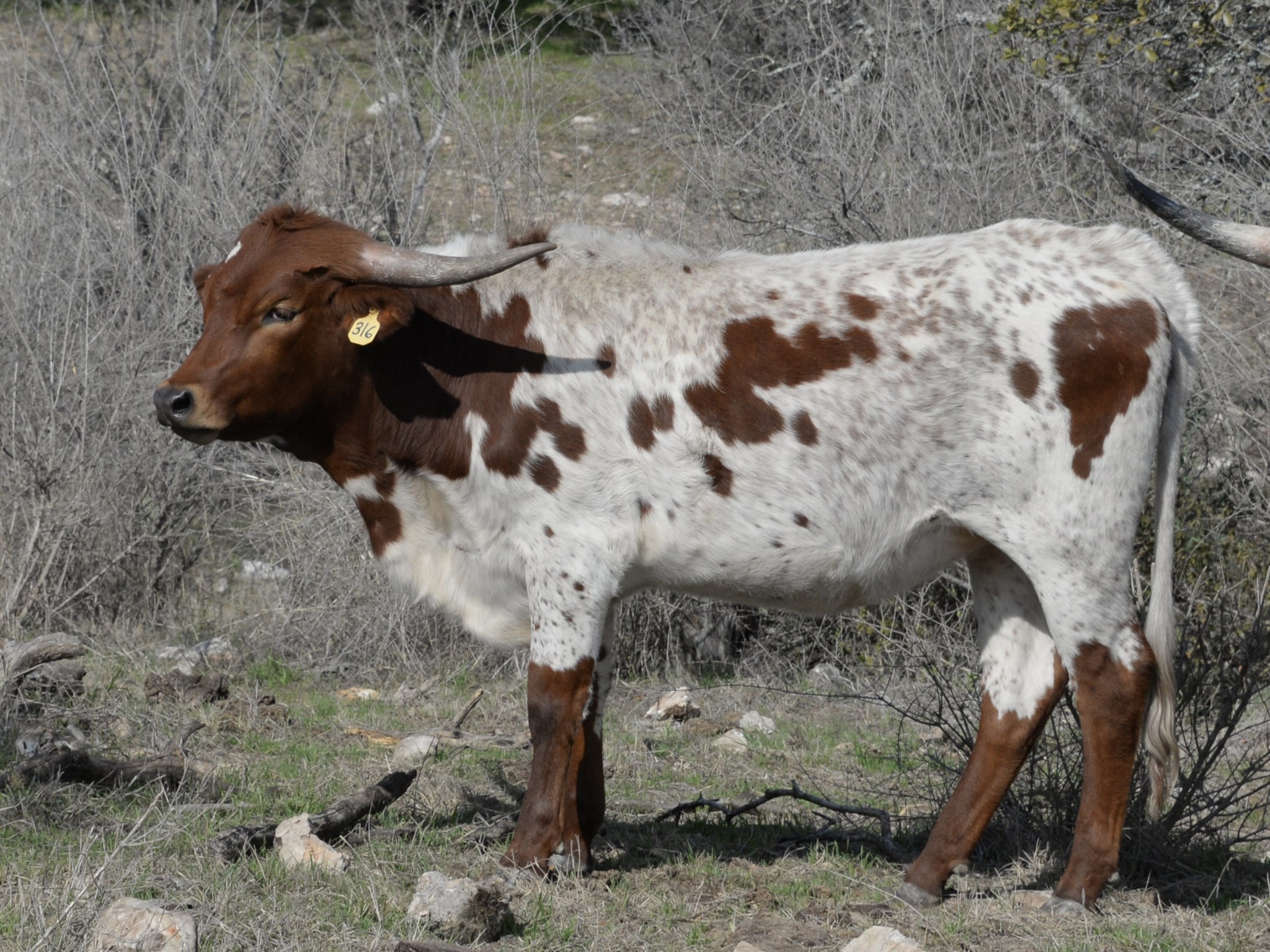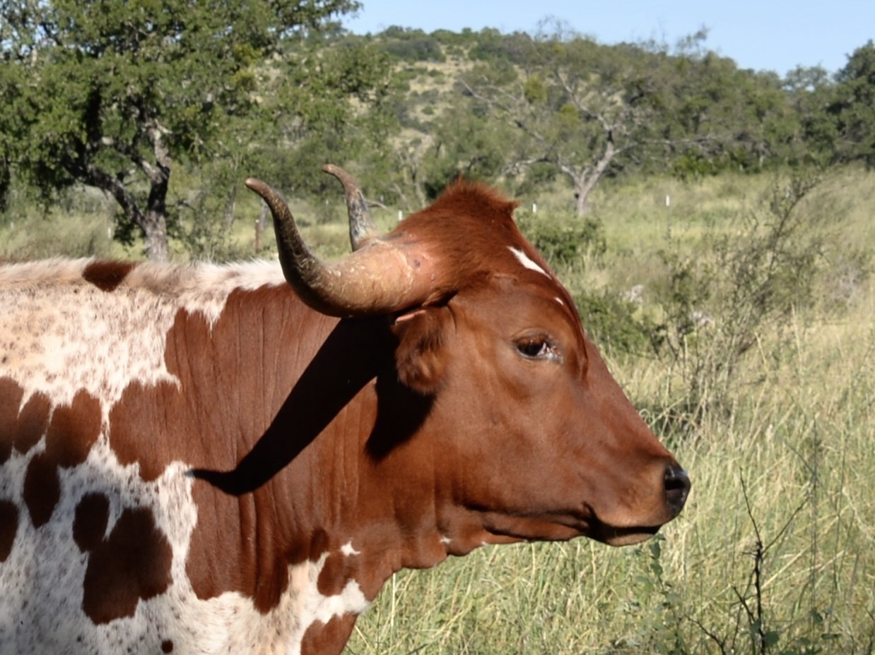This outstanding heifer has a large thick body with great conformation. She has swept back horns will rolled over tips, indicating the start of a nice twist!