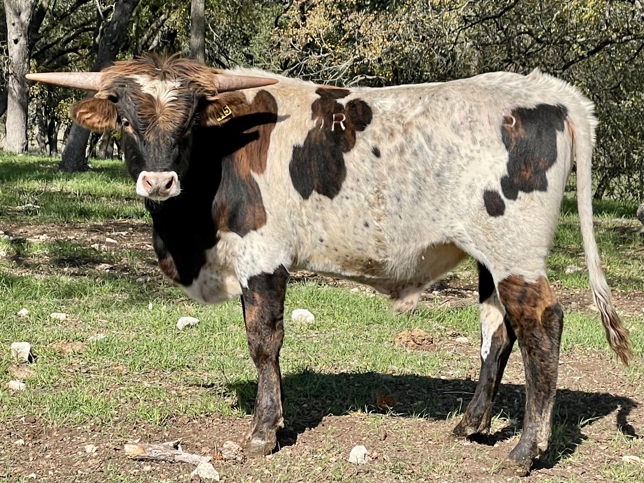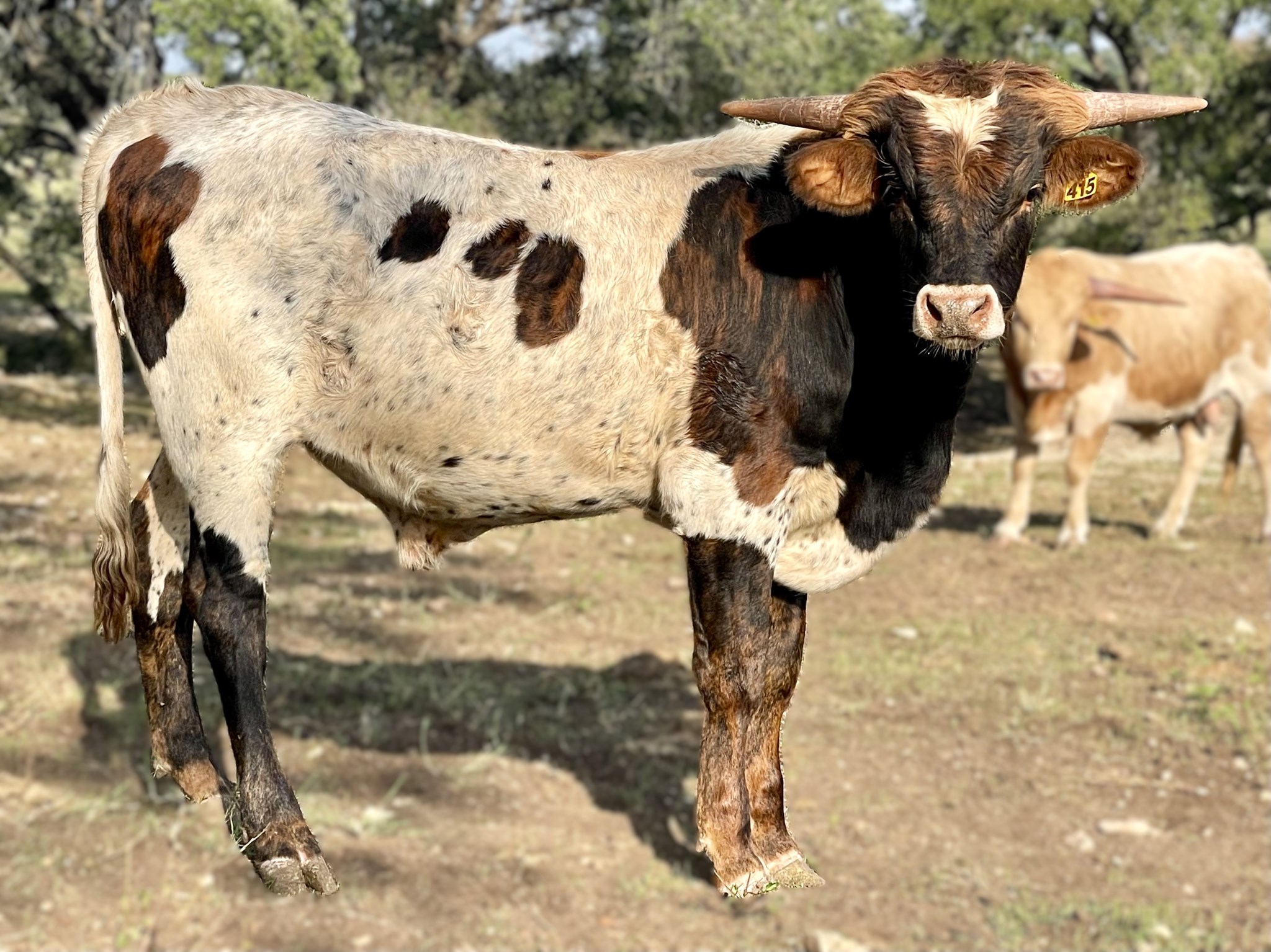 BVDPI Negative. SR 415 is a promising son of our 2000+ herd sire, SR Claude 016, out of one of our favorite back-twist parker brown cows, SR Proficient's Angel. He started putting on horn at around 4 months and has just continued growing. If you are looking for a young new herd sire or outcross sire, look no further.