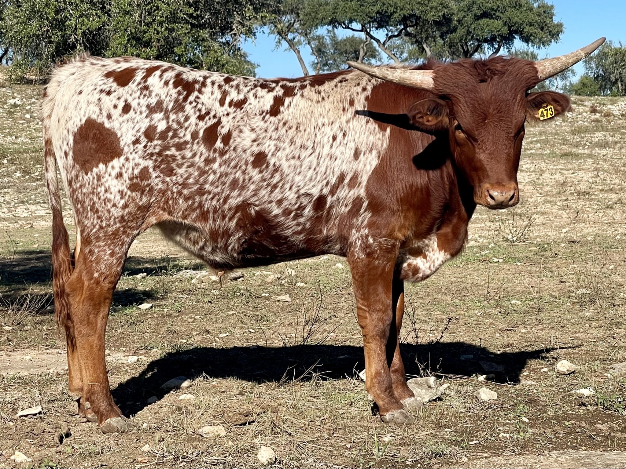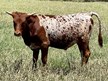 Red head, neck, shoulders, and legs. White body with red speckles and large red patches. Dark tail tip.