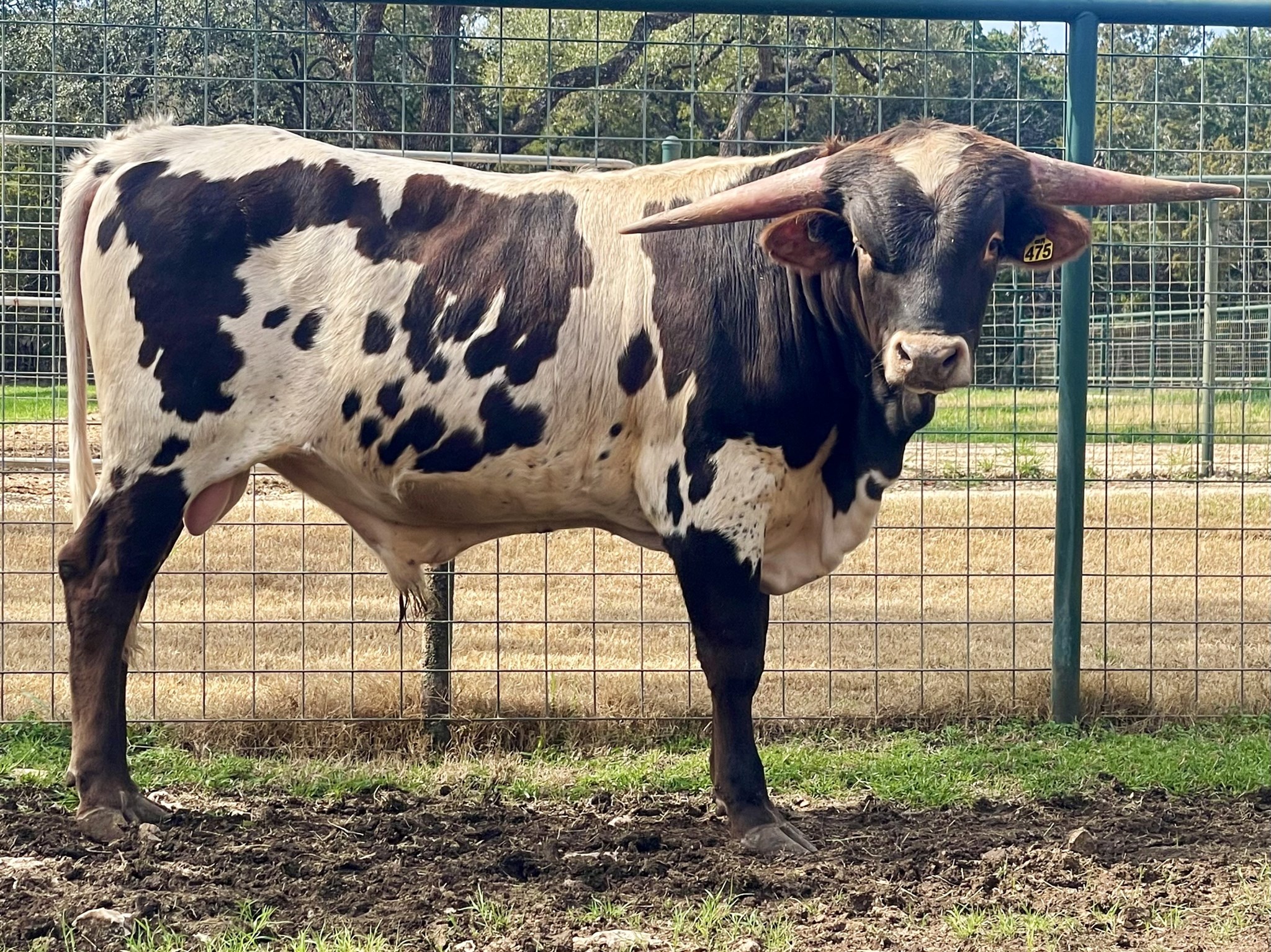 Red head with white star, red neck and shoulders, white body with large red patches.