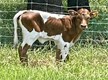 Red with thick white topline and underline, small white V on forehead, white tail with red switch.
