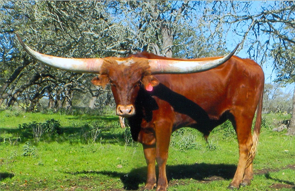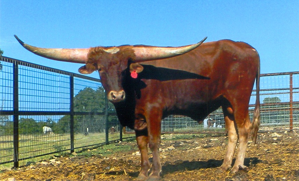 RR Escondido Red is already a longhorn legend. He currently ranks second in Total Horn for the breed among bulls with 115” of total horn. Semen is available