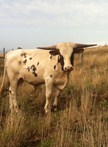 A son of the late great Cowboy Up Chex (who was a full brother to Cowboy Tuff Chex) out of a huge cow who is getting close to 90". Over 41" at 12 months old. Wow! Bronze Winner at the 2015 Horn Showcase. This bull is approaching a ton in size and throws mostly solid colored calves. His daughters are flat horned and big bodied.