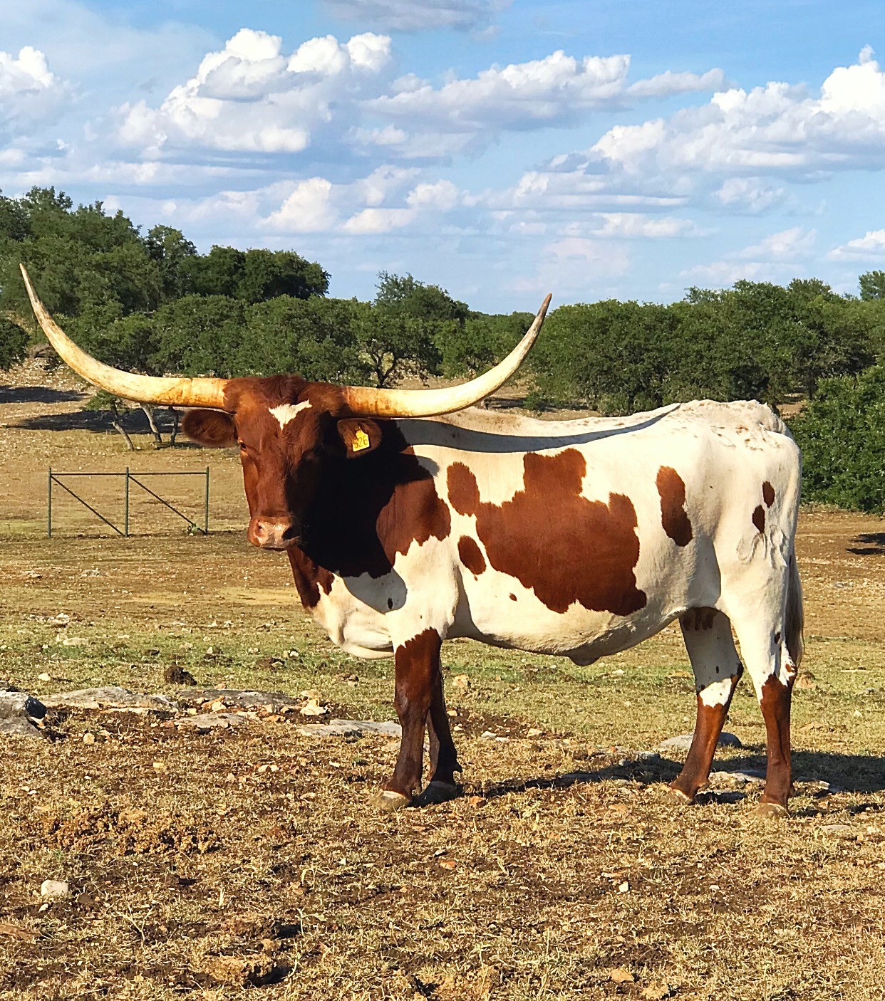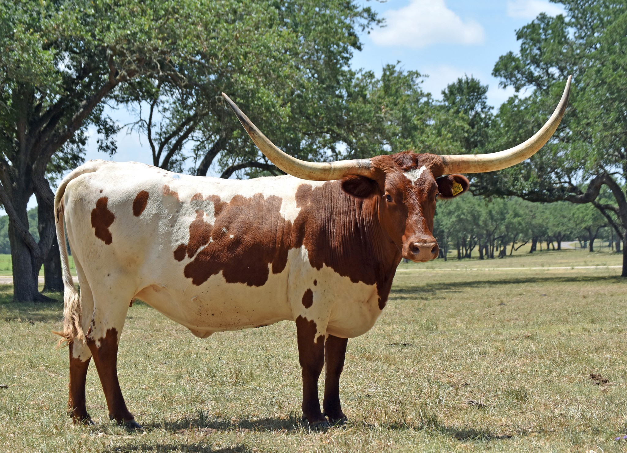 BROWN HEAD, NECK, LEGS, WHITE BODY WITH BROWN SPOTS, WHITE SPOT ON FOREHEAD