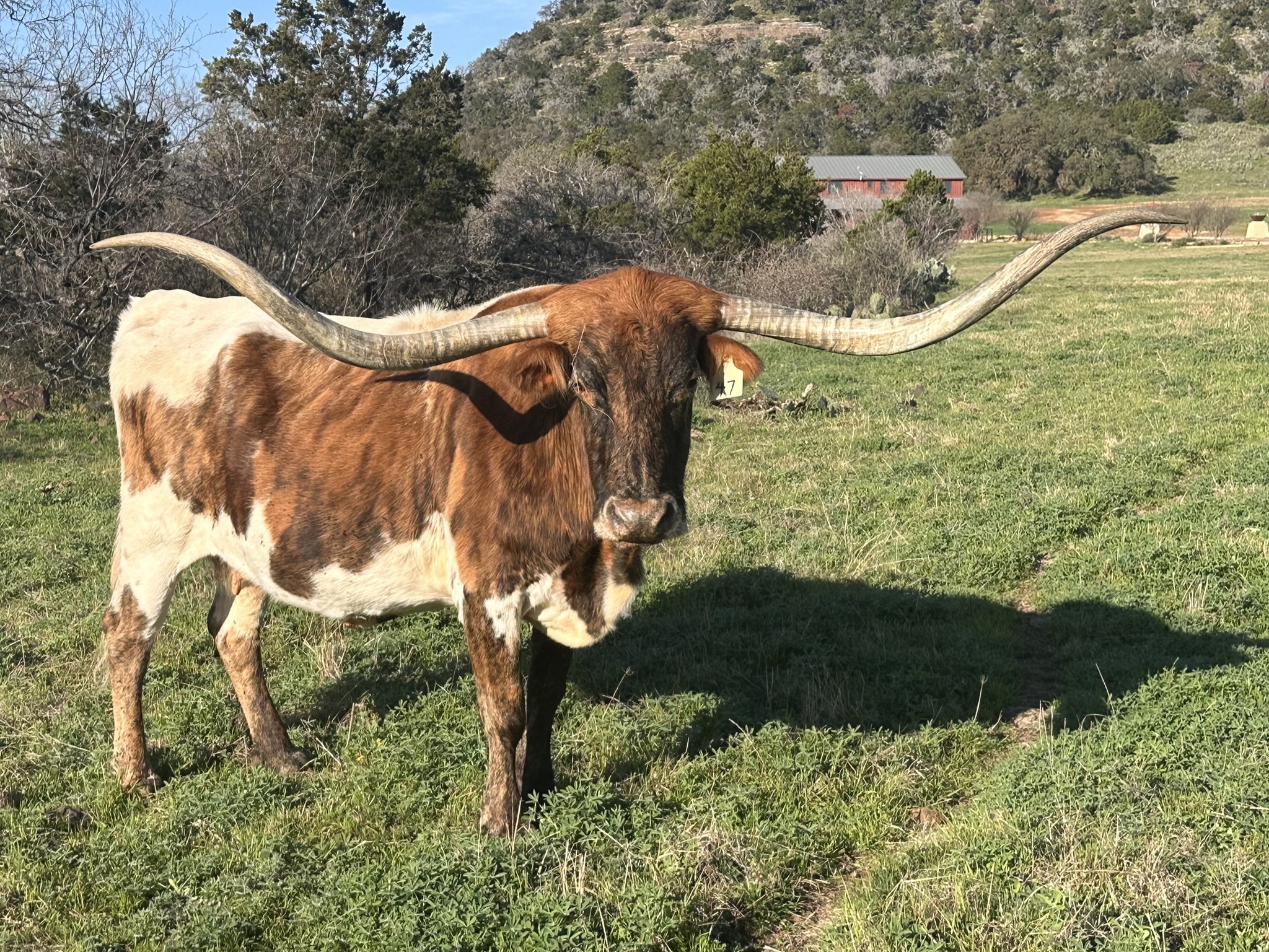 LM Longhorns acquired this legendary female for both nostalgic reasons and to see if lightning can strike twice Red McCombs acquired this cow over a decade ago, and she is one of RM's best producers ever. She is the great combination of Overwhelming Toro and Tari Graves. She is the granddam of the breed's biggest horned cow, 3S Danica. She is also the dam of a 102" 3S Toxuhdown Tari.