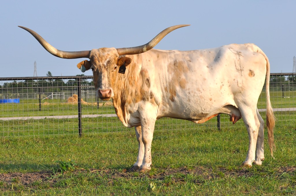 GF G-MAN daughter with plenty of production left in her tank. Just look at her daughter GF Atlanta 4 that is now over 74" ttt and owned by Allen Longhorns. We also have a great granddaughter here "Helm Sexy Rexy" that is beautiful and currently being shown. Great Grand Dam that is due to calve by our Huge Horned Multiple Bronze winner "Hunts Grand Command" now almost 75" ttt as a three year old.