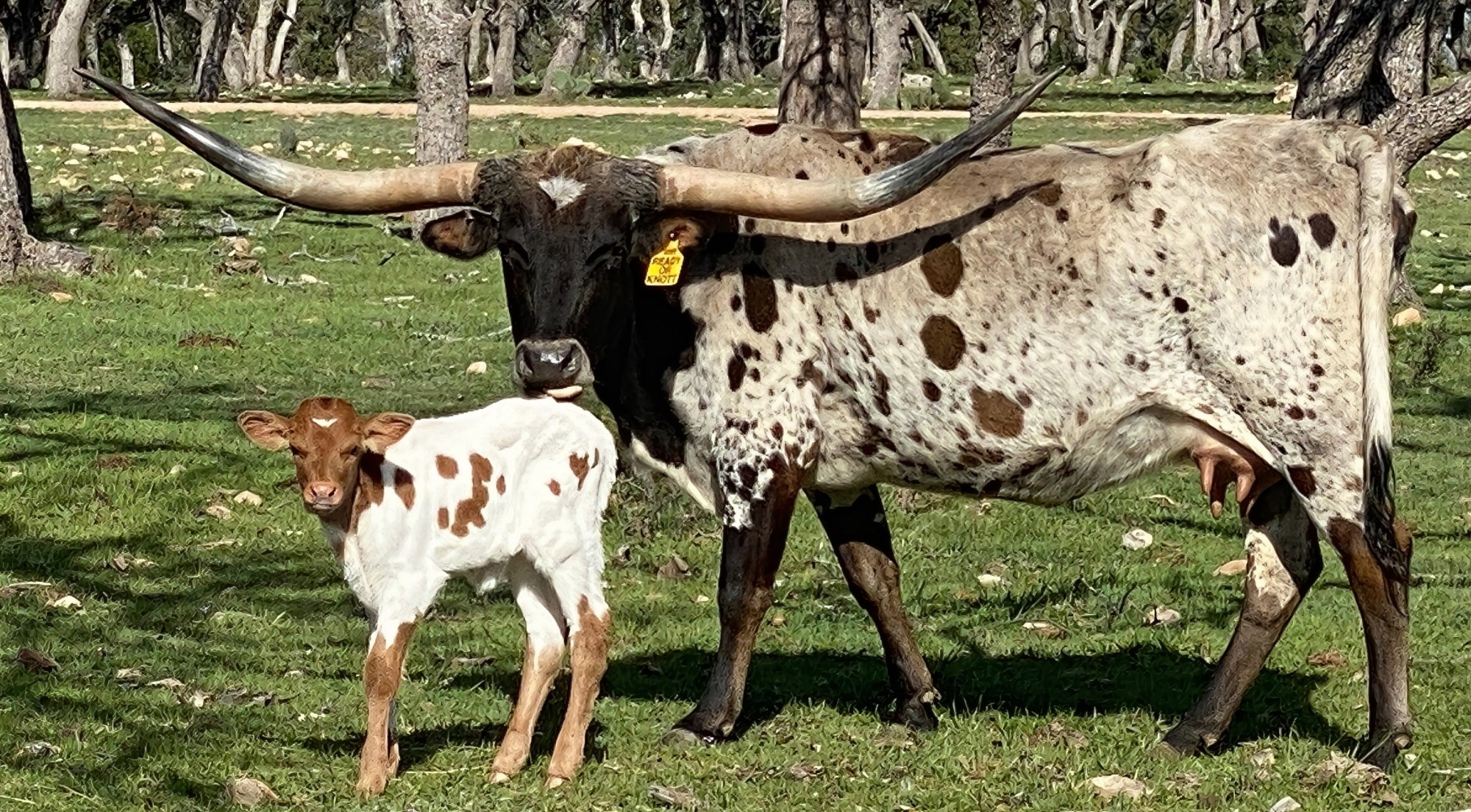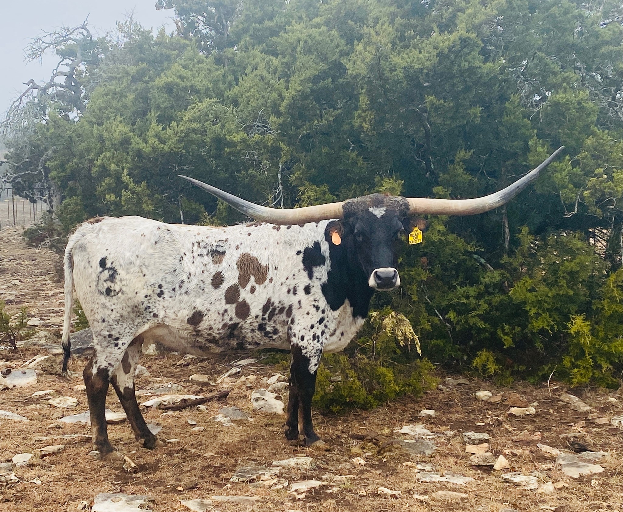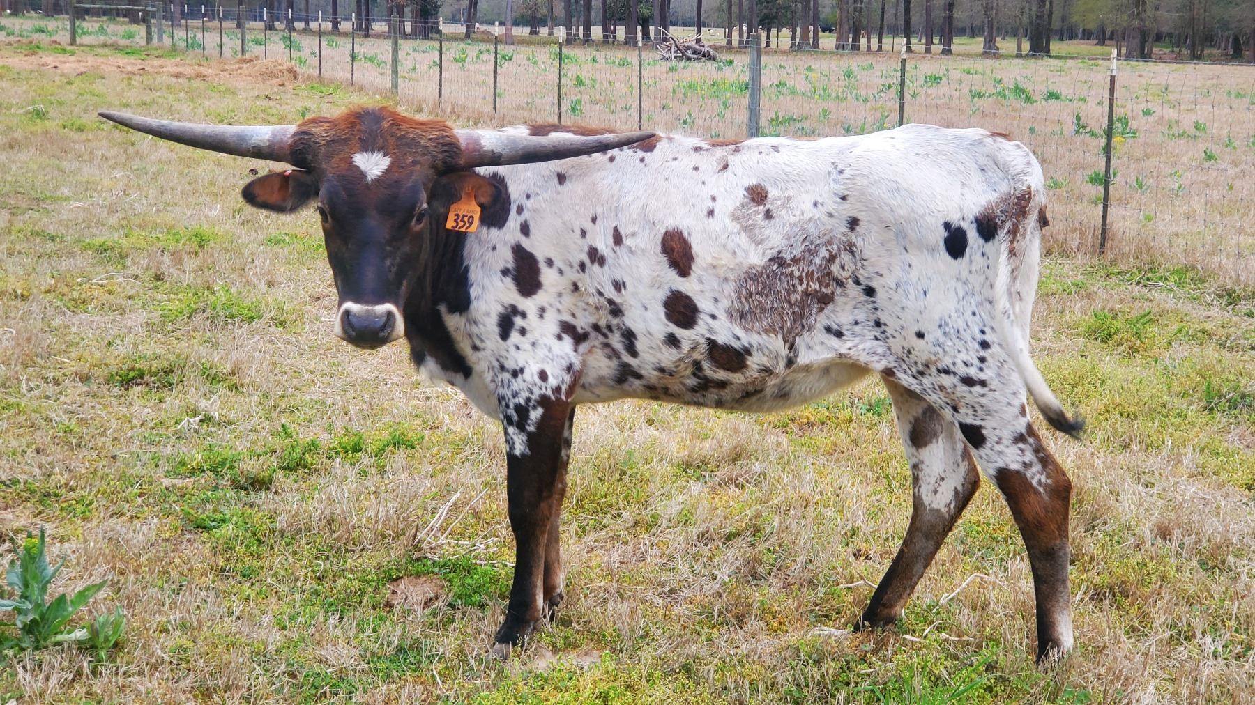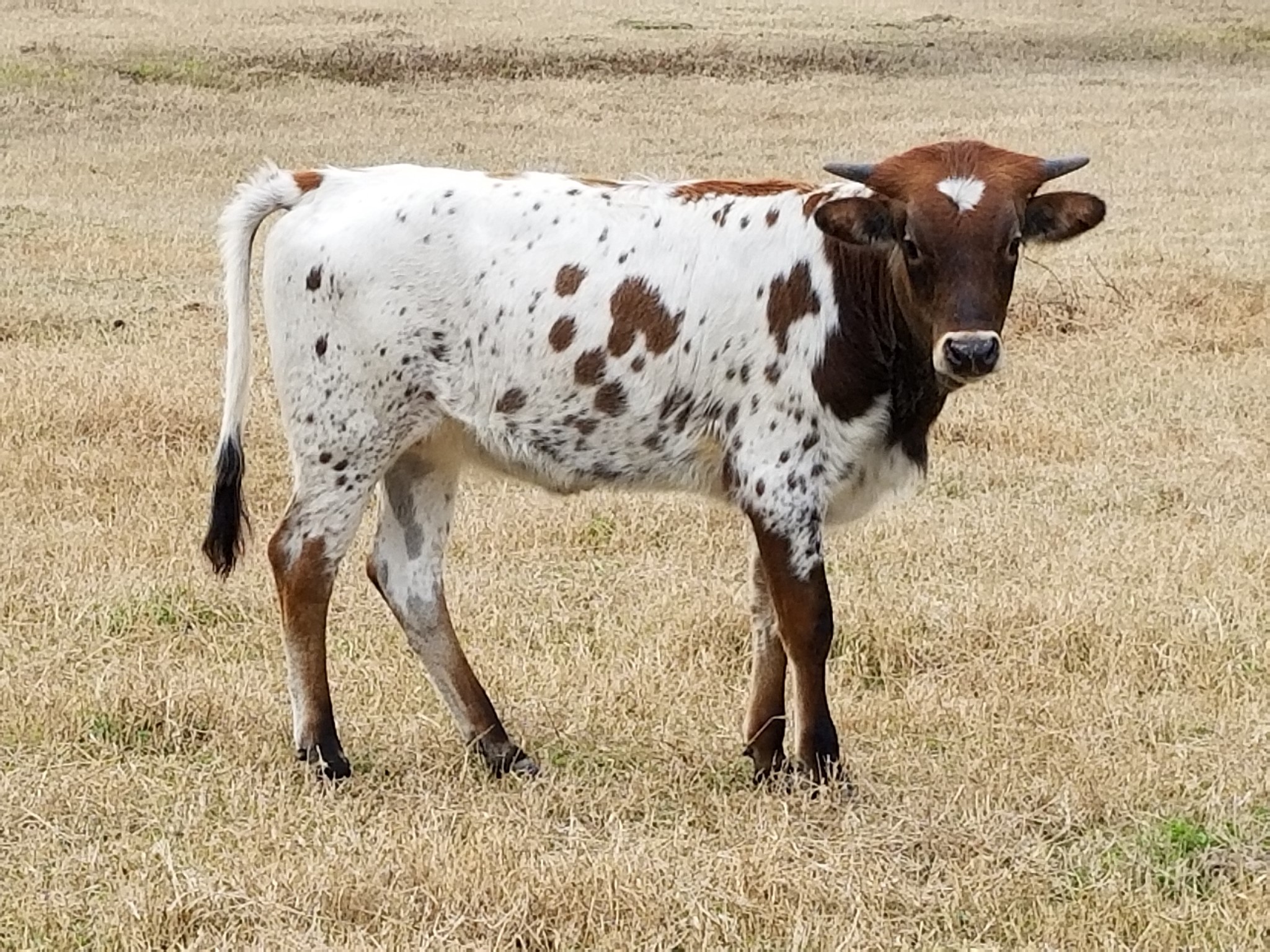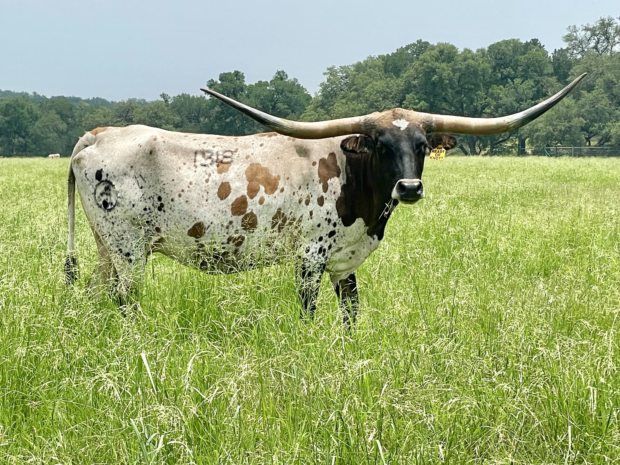 We purchased her from Struthoff Ranch in the fall of 2023. She is a long, thick cow with a coat color that keeps getting better with age. Her paternal side brings in the great cows BL Rio Catchit and D/O Miss Grande.